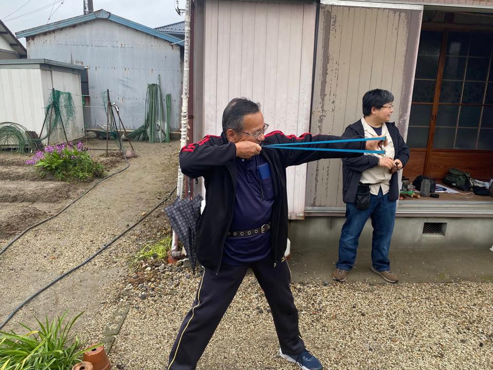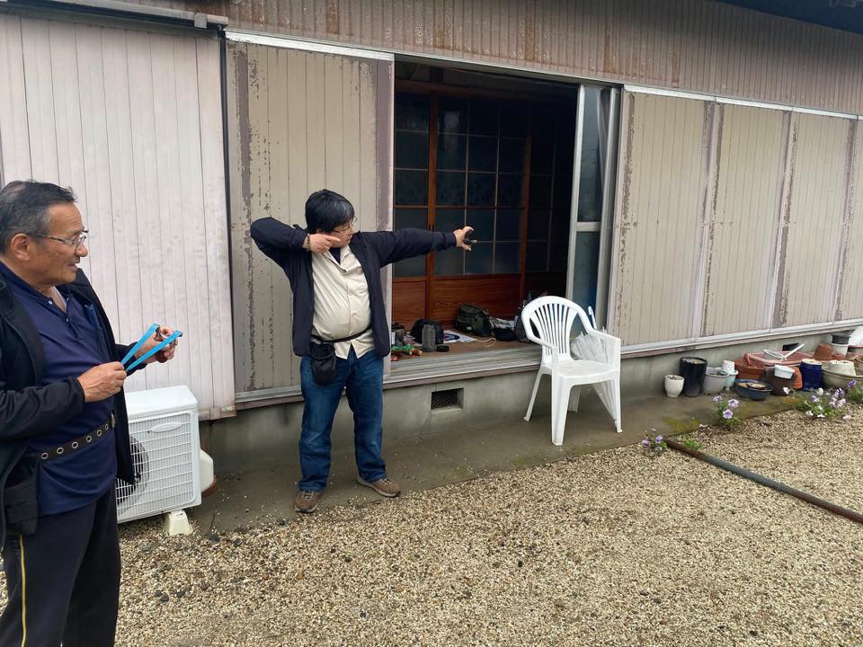 練習の休憩時間には弾弓工房「庵野吽」と「軒下工房」の見学会もあり、普段なかなか見れないスリングショット作りの現場も見て楽しんでいただきました。(^^)v