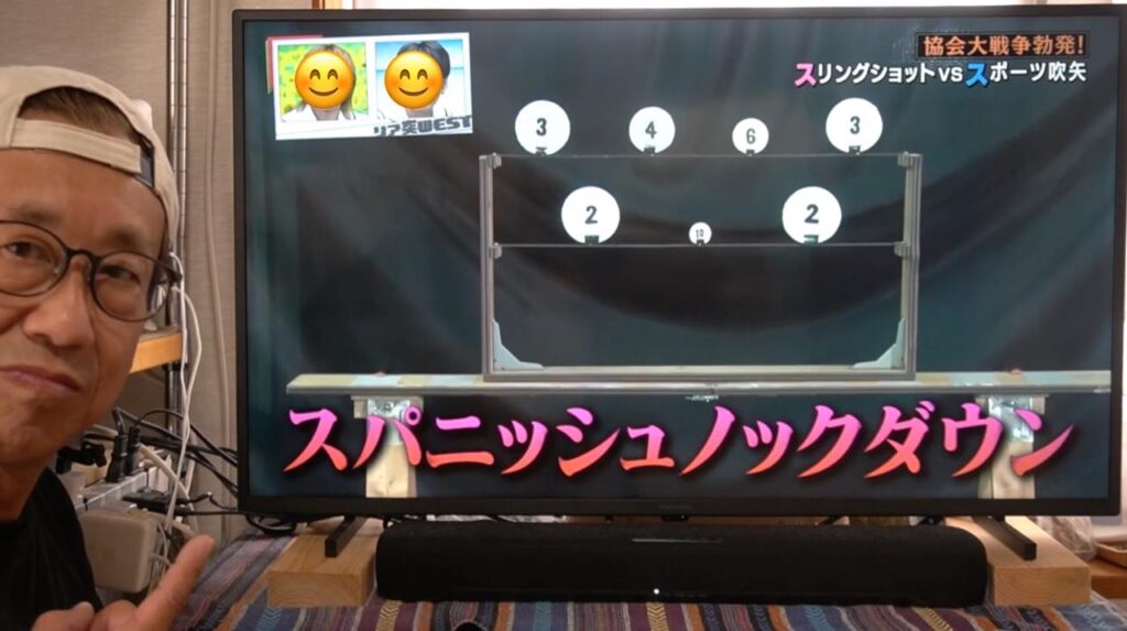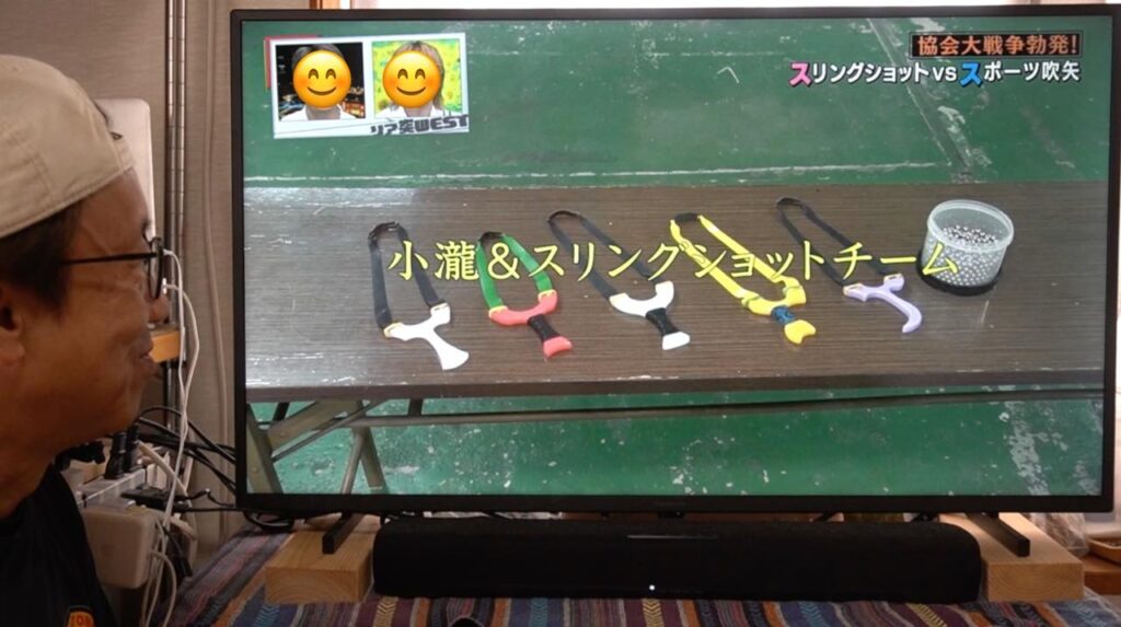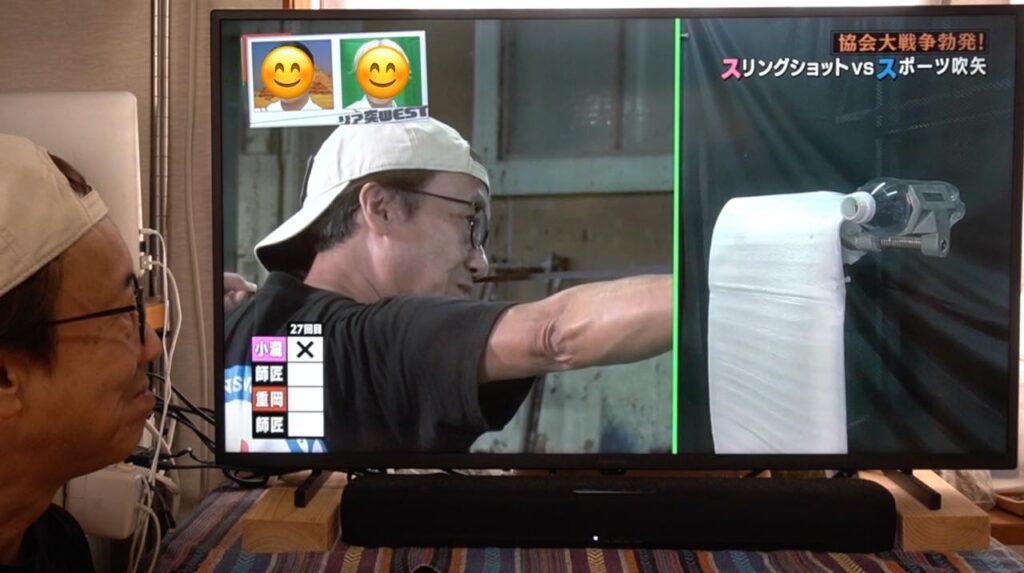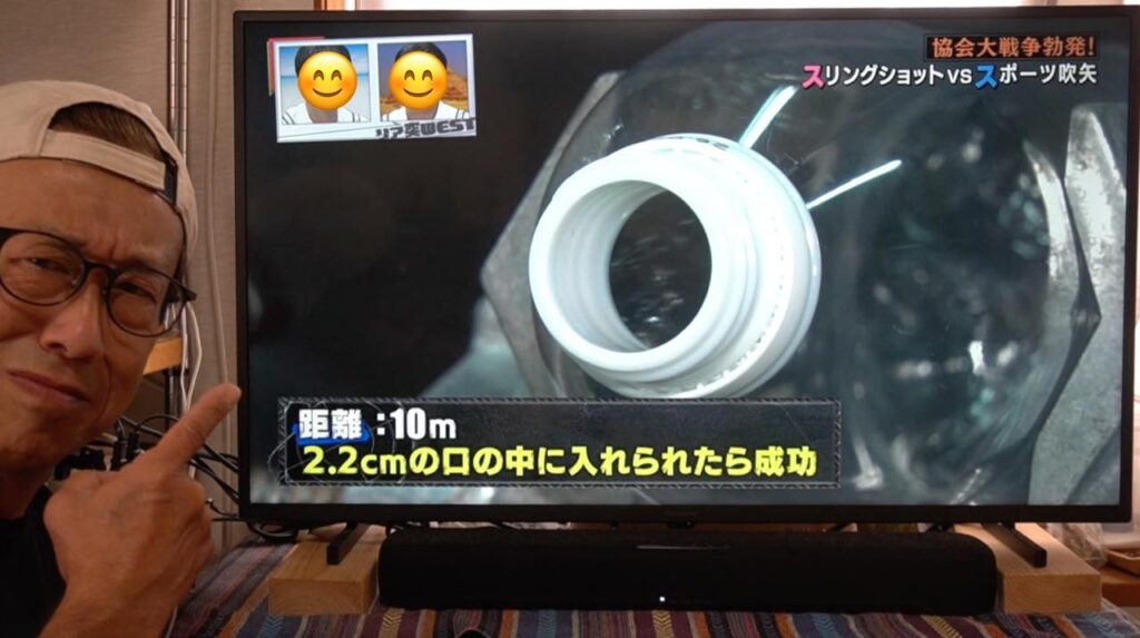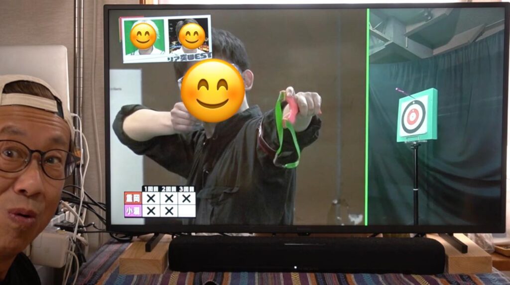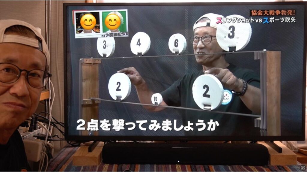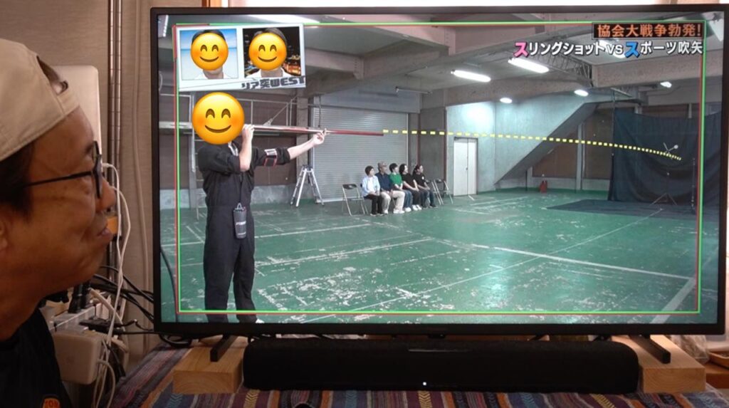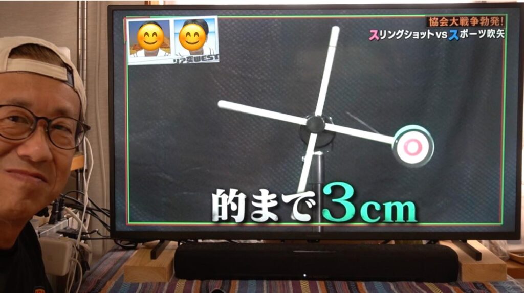 吹矢は矢が長い筒を真っ直ぐ抜けていくので矢道(弾道)が安定しやすく有利とはいえ、ワタクシのスリングショットも、もっともっと練習して精度を上げていきたいなと襟を正さなければいけないなと気づかされる1日となりました。番組の中とはいえ、対戦していただいたスポーツ吹矢振興協会様、ありがとうございました!