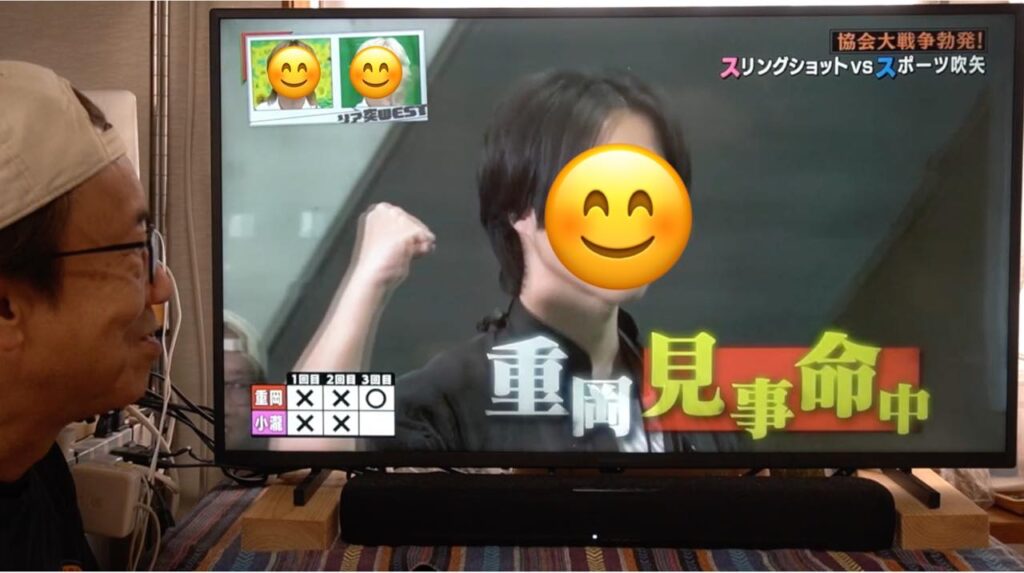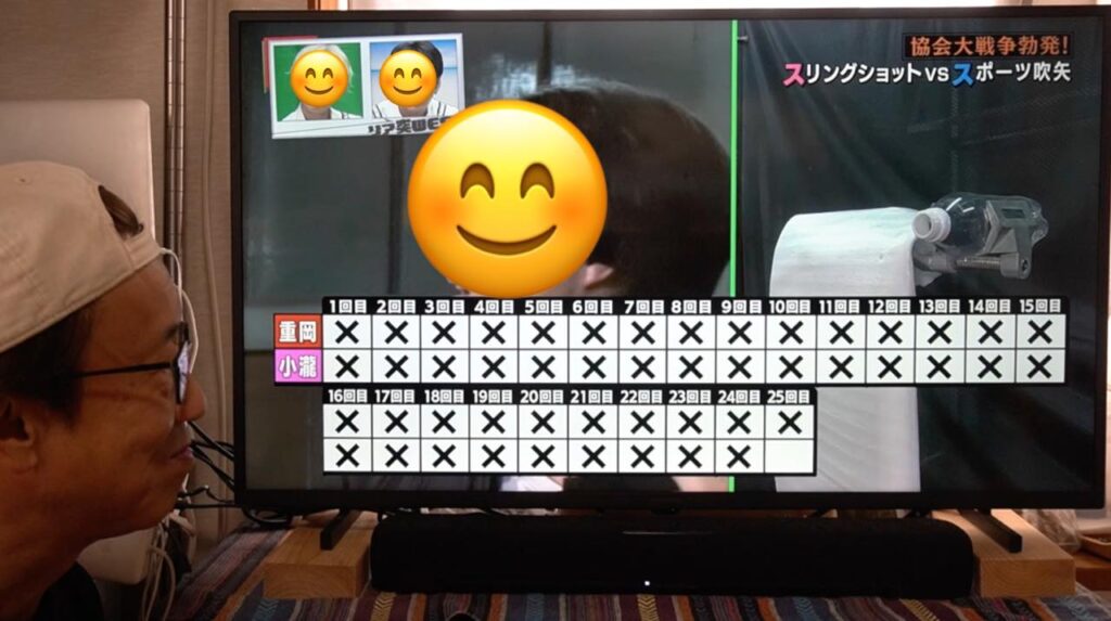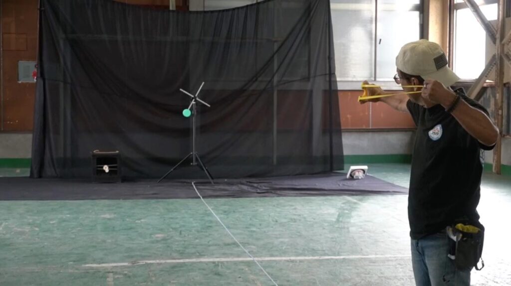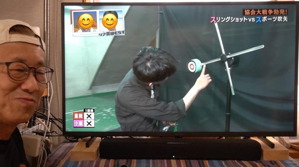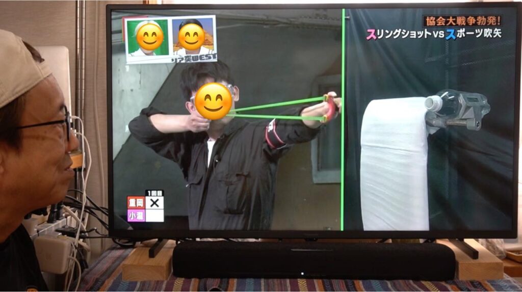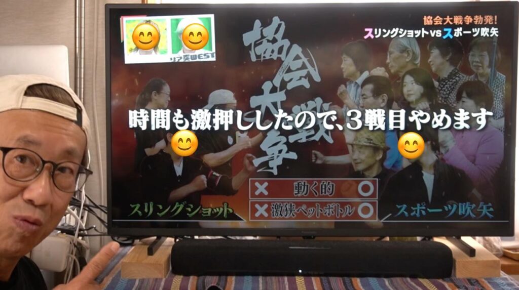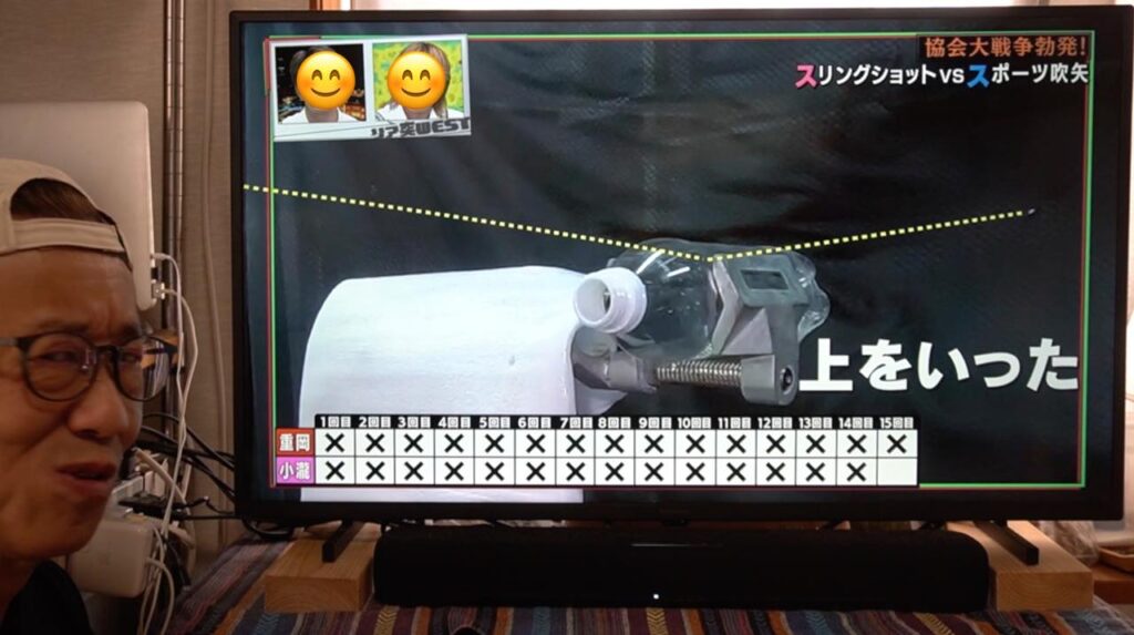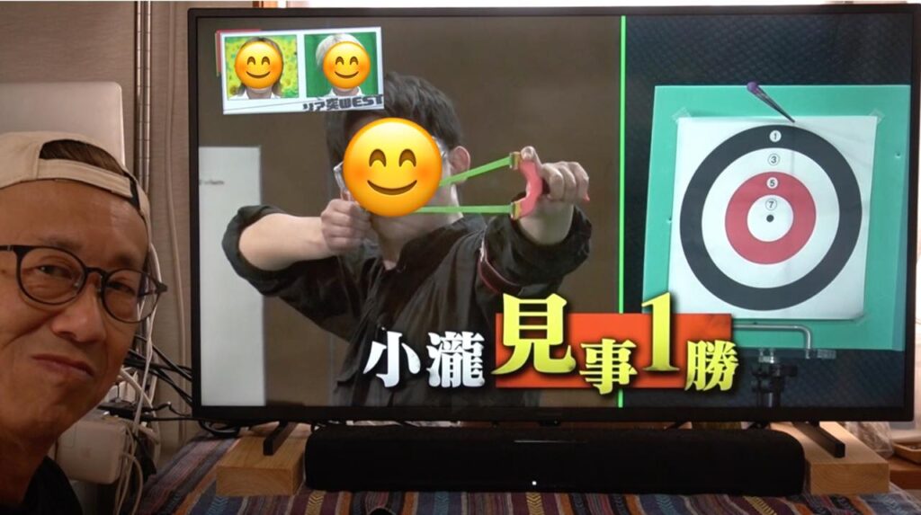 吹矢は矢が長い筒を真っ直ぐ抜けていくので矢道(弾道)が安定しやすく有利とはいえ、ワタクシのスリングショットも、もっともっと練習して精度を上げていきたいなと襟を正さなければいけないなと気づかされる1日となりました。番組の中とはいえ、対戦していただいたスポーツ吹矢振興協会様、ありがとうございました!