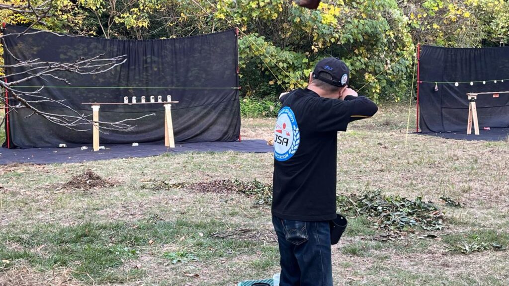 競技会初参加のK川さんとT山支部長は実際の速射競技の場面で、その当たらなさにビックリされておられるようでしたが、これも経験!と良い体験をされたようですし、H支部長は速射撃ちをせず他の種目狙いというクレバーな戦略、T中支部長は日々の練習がご自身なりの成果に、N村支部長は2秒に1発撃てるという技術を存分に披露してくれましたし、あいぽりんさんは前日のフリマ出店で疲れが残りながらも頑張っていました。