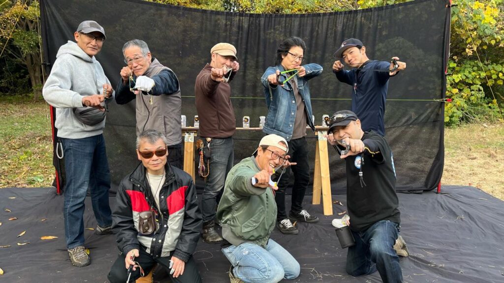 今日は本当に良い天気で気温も高く風もないので、休憩時間はピクニック気分でみんなでワイワイとスリングショット談義に花が咲きます。