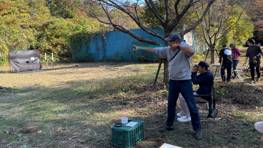 これ、いいんですが、どうしてもバラつきが出てしまうのです。バラつきだすと外す率も当然上がってしまいます。なので、今回は早い段階から平ゴムで撃とう!と練習してきました。
