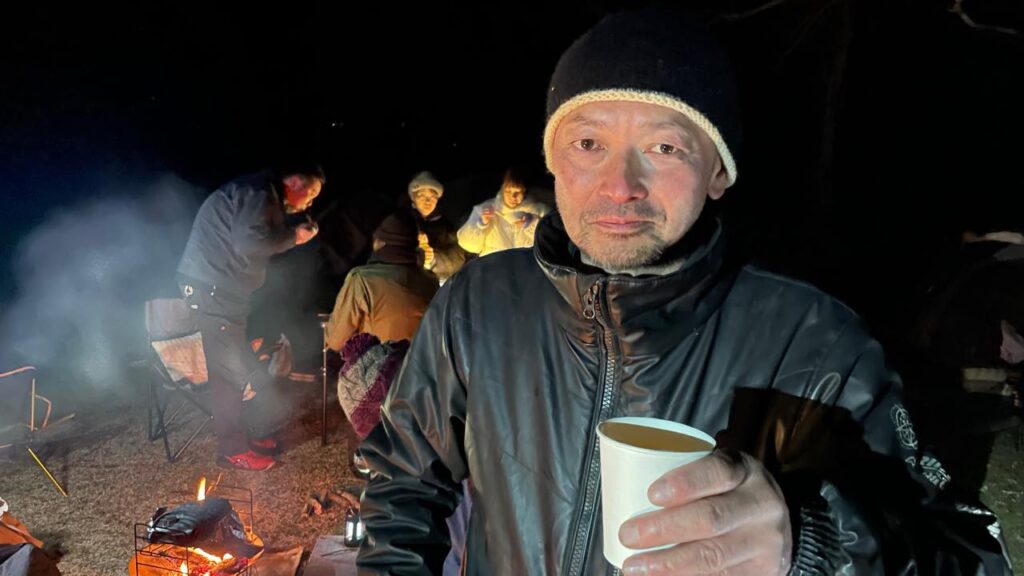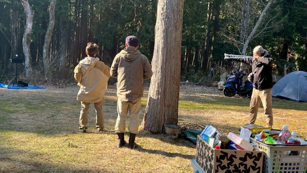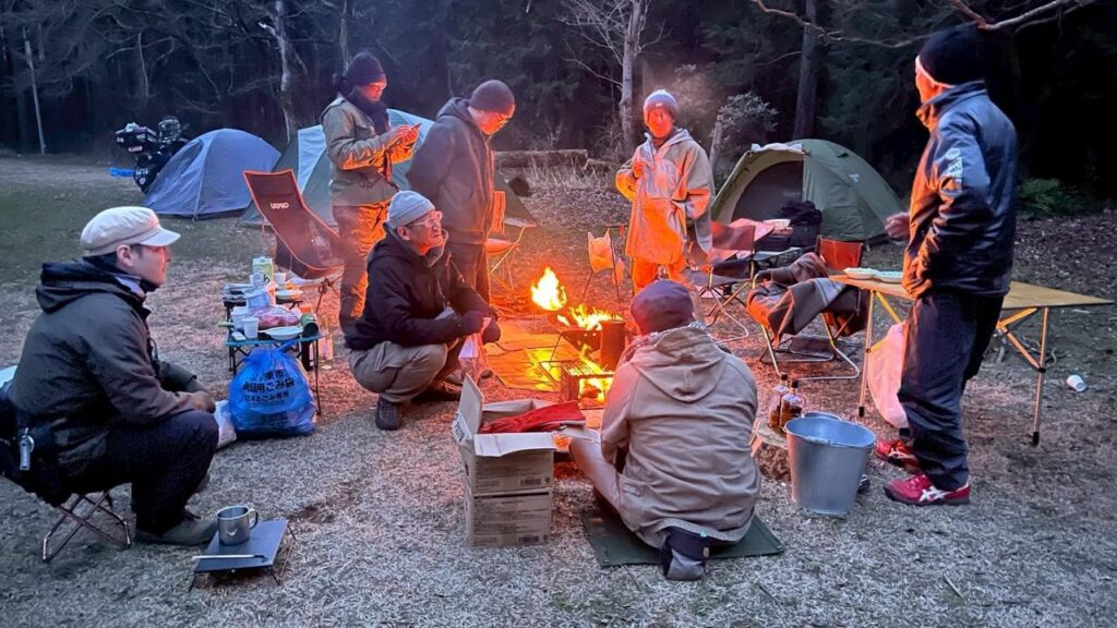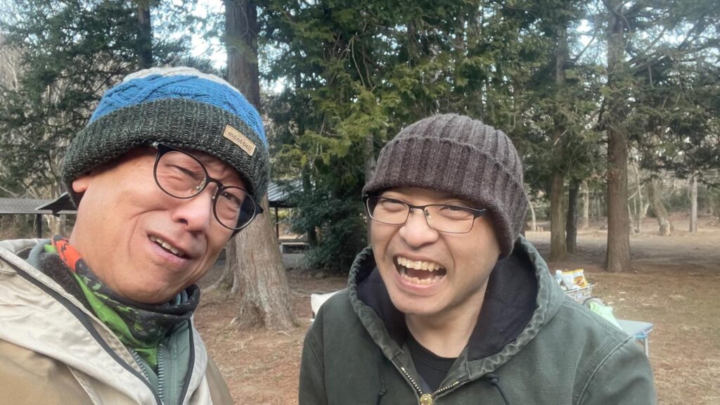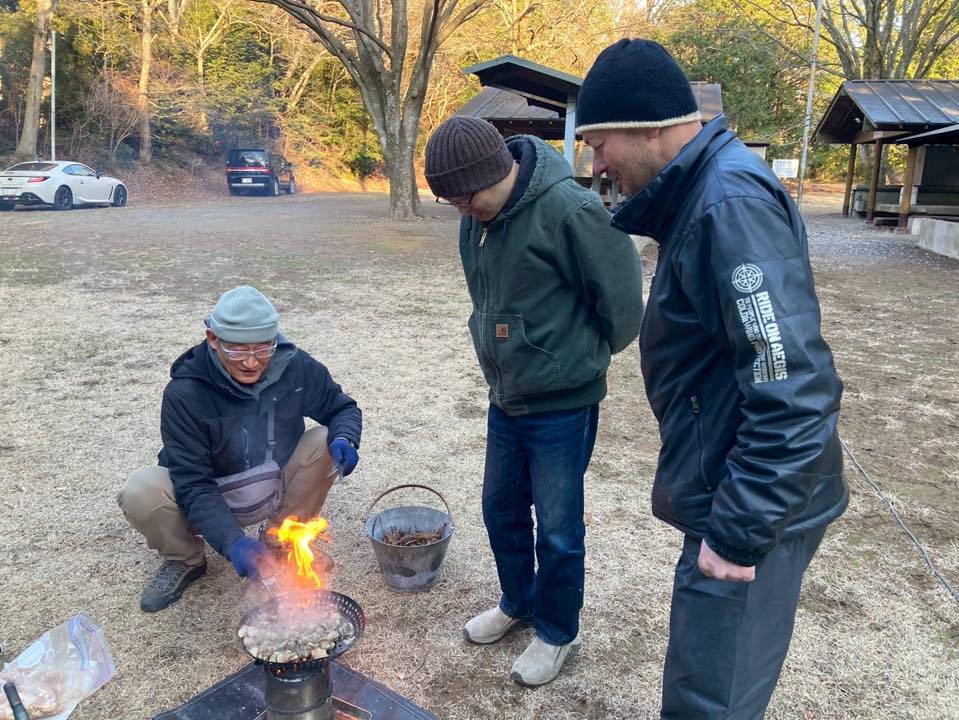 M内さんの妹さんが経営する合宿所を検討していたんですが、「キャンプで星空を眺めながら焚き火を前に一杯やるのもオツでは?」と盛り上がり、「じゃ、いつやるの?」「焚き火なら今でしょ!」ということで決定😅